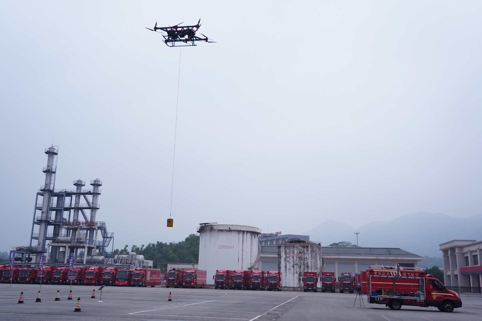 针对高层建筑火灾、森林火灾、洪涝等复杂环境中物资运输难题,测试验证了无人机载荷和精准投送的能力。测试中,多款具备大负载、精准抛投、红外热成像等功能的无人机表现亮眼。部分无人机能够在挂载140公斤的载荷下,测算作业工况下飞行时间达到15分钟以上,且具备复杂环境中物资运输、被困人员搜救等能力。