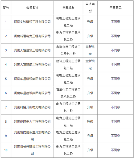 大河财立方消息 5月24日,河南省住建厅官网发布2019年第四批建筑业企业资质审查意见的公示,据统计36家申报企业仅6家被出具“同意”意见。