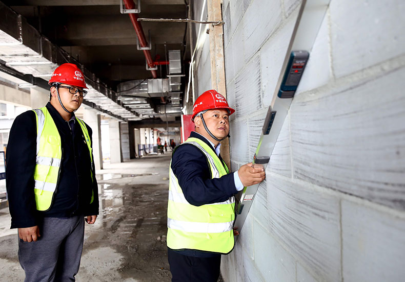 在别红亮办公室的墙上,施工进度图被密密麻麻地标注着各项工序的时间计划,细致到以小时为单位,很好地实现了“人、机、料、法、环”的协调配合。许盟军是项目的质量部长,也是别红亮带出来的徒弟,他俩合作干项目超过了10年,谈到别红亮,许盟军说:“师傅对人对事一丝不苟,午休时,我们群里经常弹出他发来的工地照片,哪里有问题,哪里需要改进优化,比我这个质量部长还操心。”