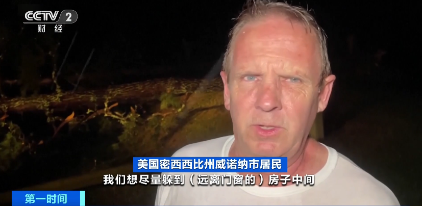 美国密西西比州威诺纳市居民:我们想尽量躲到(远离门窗)的房子中间,刚躲好,龙卷风就到了。紧随其后我们就听到了一声巨响,等到外面没有了声音,我们出来发现院子里大约有10棵树被吹倒了。